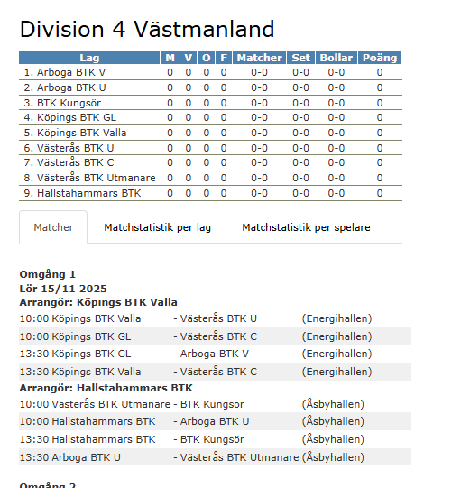 Här hittar du BTK Kungsörs matcher och resultat i Division 4 Västmanland säsongen 2025/2026.